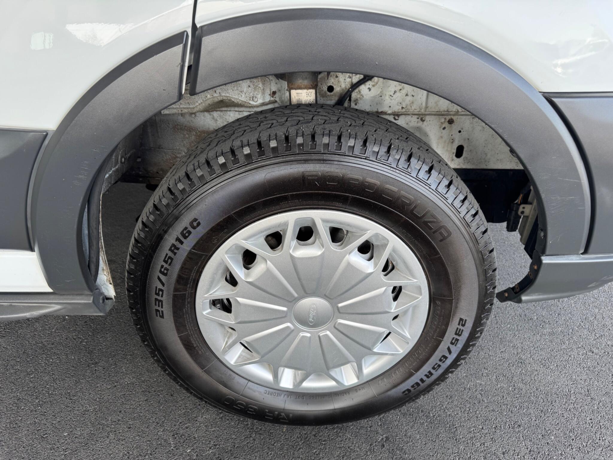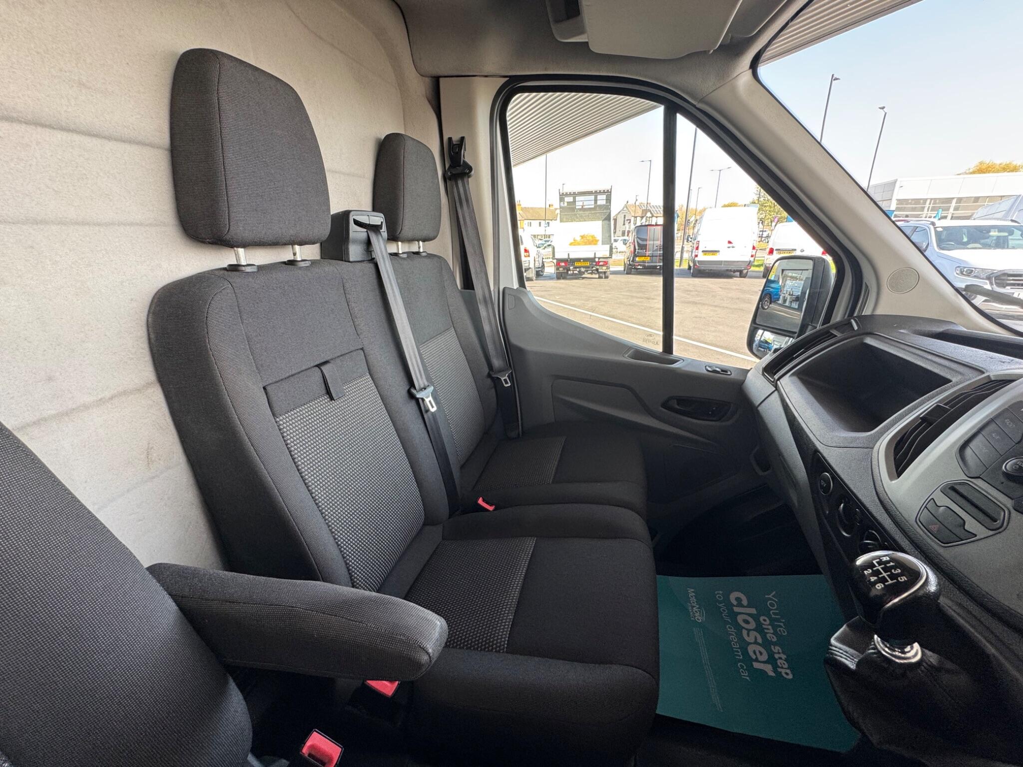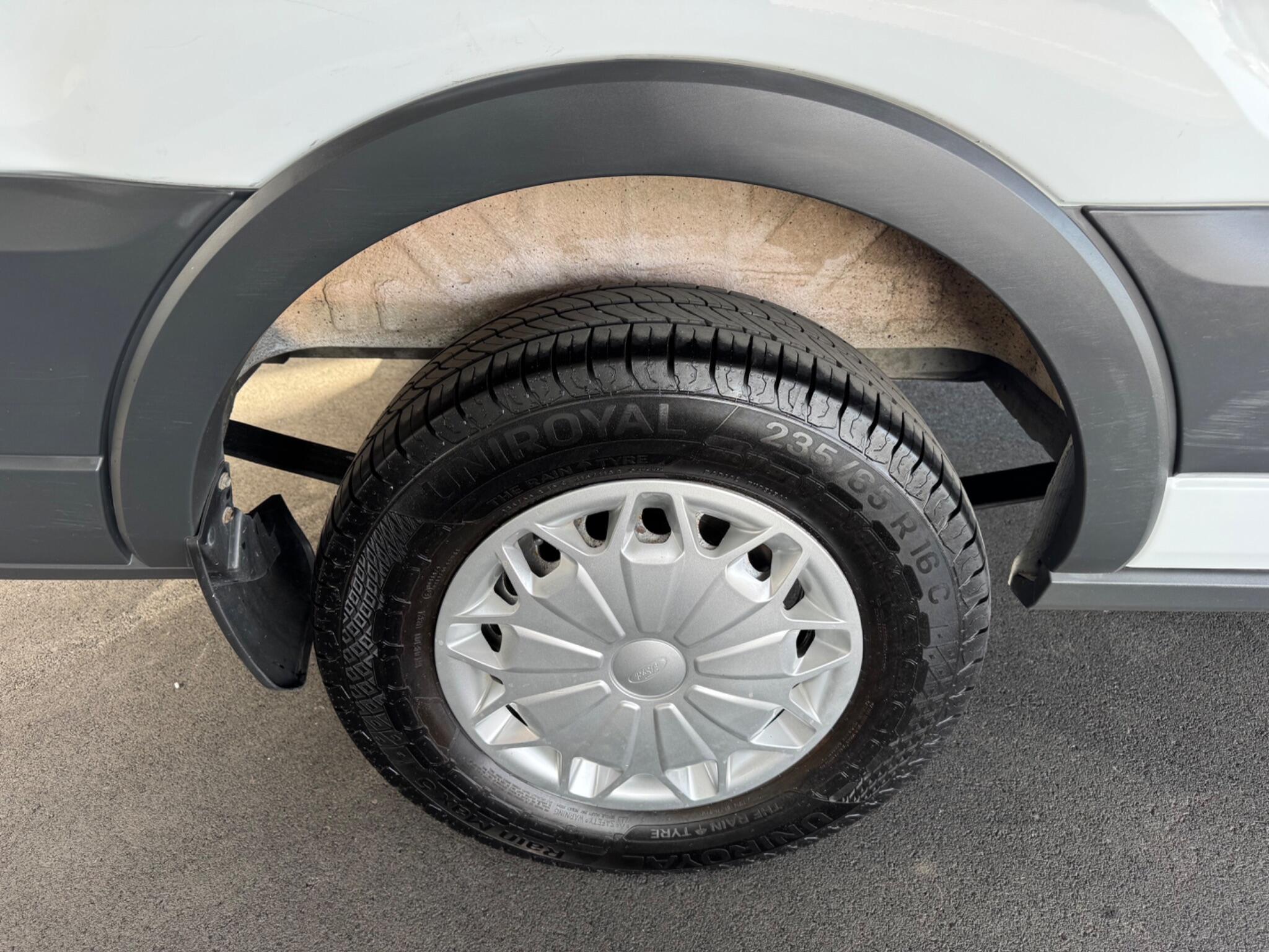 16in Steel Wheels, 8-Way Driver Seat with Fore-Aft – Recline -Height and Tilt, Airbags – Driver, Anti-Lock Braking System – ABS with Electronic Brake Force Distribution – EBD, Armrest – Drivers, Assist Handle – Located on B-pillar, Auxiliary Connection Point – 1x12V – 60A Connection Located Under Driver Seat Pedestal, Battery – Cold Start -20 Degree C, Battery – Single Improved Flood – IF, Bodyside Mouldings – Wide – Self Colour, Bottle Holder – Twin 2 litre Bottle Capacity – Facia-Mounted, Bulkhead – Full Steel, Bumper – Front Body Colour – Partial, Courtesy Lights – Header-Mounted Front with Theatre Dimming, Curve Control, Daytime Running Lamps, Door Handles – Self Coloured, Door Mirrors – Blind Spot Eliminator and Integrated Side Indicator, Door Mirrors – Manual Adjust, Doors – Passengers Sliding Side Load Door and Step, Doors – Unglazed Rear Doors – Hinged for 180 Degree Opening – Positive Stop At 90 Degree, Driver Seat Belt Minder, Dual-Circuit Front and Rear Discs with Self-Adjusting Servo-Assistance and ABS, EBA – Emergency Brake Assist, EDCC – Electronic Dynamic Cornering Control, ESC – Electronic Stability Control, Emergency Brake Warning, Floor Covering – Cab Easy-Clean Rubber, Ford Connected Audio System, Ford Easy-Fuel Capless Refuelling System, Ford Eco Mode – Driver Information System, Front Grille – Sterling Grey, Gearshift Indicator Light, Glovebox with A4 File Storage, Headlights – Courtesy Delay, Headlining – Cab – Moulded, Heater – Positive Thermal Coefficient – PTC, Hill Start Assist, Immobiliser – Safeguard Passive Anti-Theft System – PATS – Insurance-Approved Category 2 Immobiliser, Interior Lighting – Battery Saver – 30min, LAC – Load Adaptive Control, Less Easy Clean Floor, Less Steel Spare Wheel, Liftgate – Cargo Door Handle – Self Colour, Load Compartment – DIN 75410 Compliant Tie-down Loops, Loadspace Compartment Light, Locks – Audio Mislock Feedback – Audible Signal if a Door is Ajar When Locking Activated, Locks – Auto Locking on Drive-Away – Doors Automatically Lock at 8 kmh or 5 mph, Locks – Auto Relocking – Doors Relock after 45 Seconds if no Door is Opened, Locks – Configurable Unlocking, Locks – Key Operated Bonnet Release, Locks – Power Door Deadlocks – Shielded with Strengthened Mountings, Locks – Remote Control Central Locking with One Key Fob, Mud Flaps – Rear, Overhead Storage Shelf, Power Point Socket – 2x 12V, Power-assisted Steering – PAS, RSC – Roll Stability Control, Rear Bumper – Self Colour with Integrated Step, Recirculation Heater – Front, Seat Belts – 3-Point Diagonal Inertia Reel – All Seats, Seat Tray-Table, Seats – Dual Passenger, Side Wind Mitigation, Standard Duty Alternator – 150amp, Steering Column – Rake and Reach Adjustment, Steering Wheel – 4 Spoke Polyurethane, Storage – Drivers Side – Storage Compartment on Facia Top with Lift Up Lid, Storage – Front Door Map Pockets, Storage – Underseat Stowage Compartment Under Dual Passenger Seat, Suspension – Front Independent MacPherson Struts -Variable Rate Coil Springs – Stabiliser Bar – Gas-Pressurised Shock Absorbers and Rear Leaf Springs, Traction Control – TC, Trip Computer, Tyre Inflator Kit, Vehicle Identification Number – VIN – Visible, Water in Fuel Filter with Sensor, Wheel Covers – Half Caps, Windows – Electrically-Operated Front with One-Touch on Drivers Side, Wipers – Front Variable-Intermittent with Electric Wash