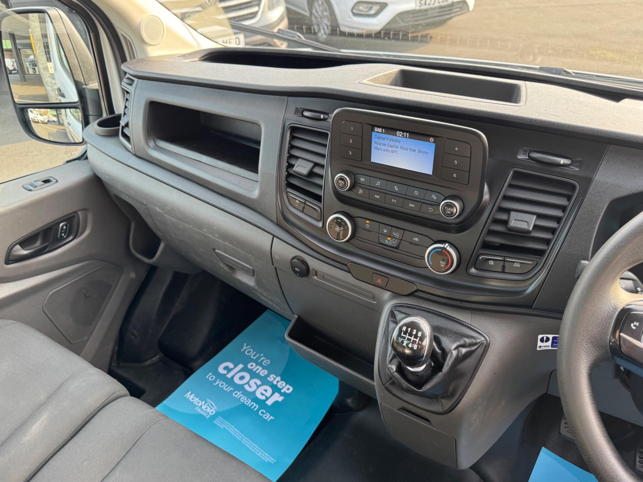 16in Steel Wheels, ABS – Anti-lock Braking System, Battery – Cold Start -20 Degree C, Bottle Holder – Twin 2 litre Bottle Capacity – Facia-Mounted, Bumper – Front Body Colour – Partial, Coated Particulate Filter, Courtesy Lights – Header-Mounted Front with Theatre Dimming, Curve Control, Door Mirror – Manual Adjust – Short Arm, Door Mirrors – Blind Spot Eliminator and Integrated Side Indicator, Drivers 8-Way Seat Adjustable with Armrest, Drivers Airbag, Dual Rear Wheels, Dual-Circuit Front and Rear Discs with Self-Adjusting Servo-Assistance and ABS, EBA – Emergency Brake Assist, EPAS – Electric Power Assisted Steering, ESC – Electronic Stability Control, Easy-clean Rubber Floor Covering in Cab, Electric Windows – Front with One Touch Lowering Drivers, Emergency Brake Warning, Ford Easy Fuel Capless Refuelling System with Misfuel Inhibitor, Ford SYNC with 4.2in TFT Screen, Front Grille – Self Colour, Glovebox with A4 File Storage, Headlights – Halogen Projector Containing Daytime Running LIghts, Headlights – Levelling Control, Headlights – Quad Beam, Headlining – Cab – Moulded, Hill Start Assist, ICE Pack 17, Immobiliser – Safeguard Passive Anti-Theft System – PATS – Insurance-Approved Category 2 Immobiliser, LAC – Load Adaptive Control, Lane Keeping Aid, Lane Keeping Alert, Locks – Audio Mislock Feedback – Audible Signal if a Door is Ajar When Locking Activated, Locks – Auto Locking on Drive-Away – Doors Automatically Lock at 8 kmh or 5 mph, Locks – Auto Relocking – Doors Relock after 45 Seconds if no Door is Opened, Locks – Configurable Unlocking – 2-Stage Unlocking, Locks – Key Operated Bonnet Release, Locks – Power Door Deadlocks – Shielded with Strengthened Mountings, MyKey, Overhead Storage Shelf, Pre-Collision Assist with Pedestrian Detection, RSC – Roll Stability Control, Recirculation Heater – Front, Remote Central Locking, Roof Marker Lights, Seatbelts – 3 Point Diagonal Inertia Reel – All Seats, Seats – 2-Way Manual Dual Passenger, Seats – Front Passenger 2-Way Adjustment, Selectable Drive Mode, Shift Indicator Light, Side Wind Mitigation, Single AGM Battery, Steering Column – Rake and Reach Adjustment, Steering Wheel – 4 Spoke Polyurethane, Storage – Drivers Side – Storage Compartment on Facia Top, Storage – Front Door Map Pockets, Storage – Underseat Stowage Compartment Under Dual Passenger Seat, Suspension – Front Independent MacPherson Struts -Variable Rate Coil Springs – Stabiliser Bar – Gas-Pressurised Shock Absorbers and Rear Leaf Springs, Tinted Glass, Trip Computer, Two 12V Power Socket, Tyre Inflator Kit, Vehicle Identification Number – VIN – Visible, Vehicle Maintenance Monitor, Water in Fuel Filter with Sensor, Wheel Covers – Half Caps, Wide Bodyside Mouldings – Self Colour, Wipers – Front Variable-Intermittent with Electric Wash