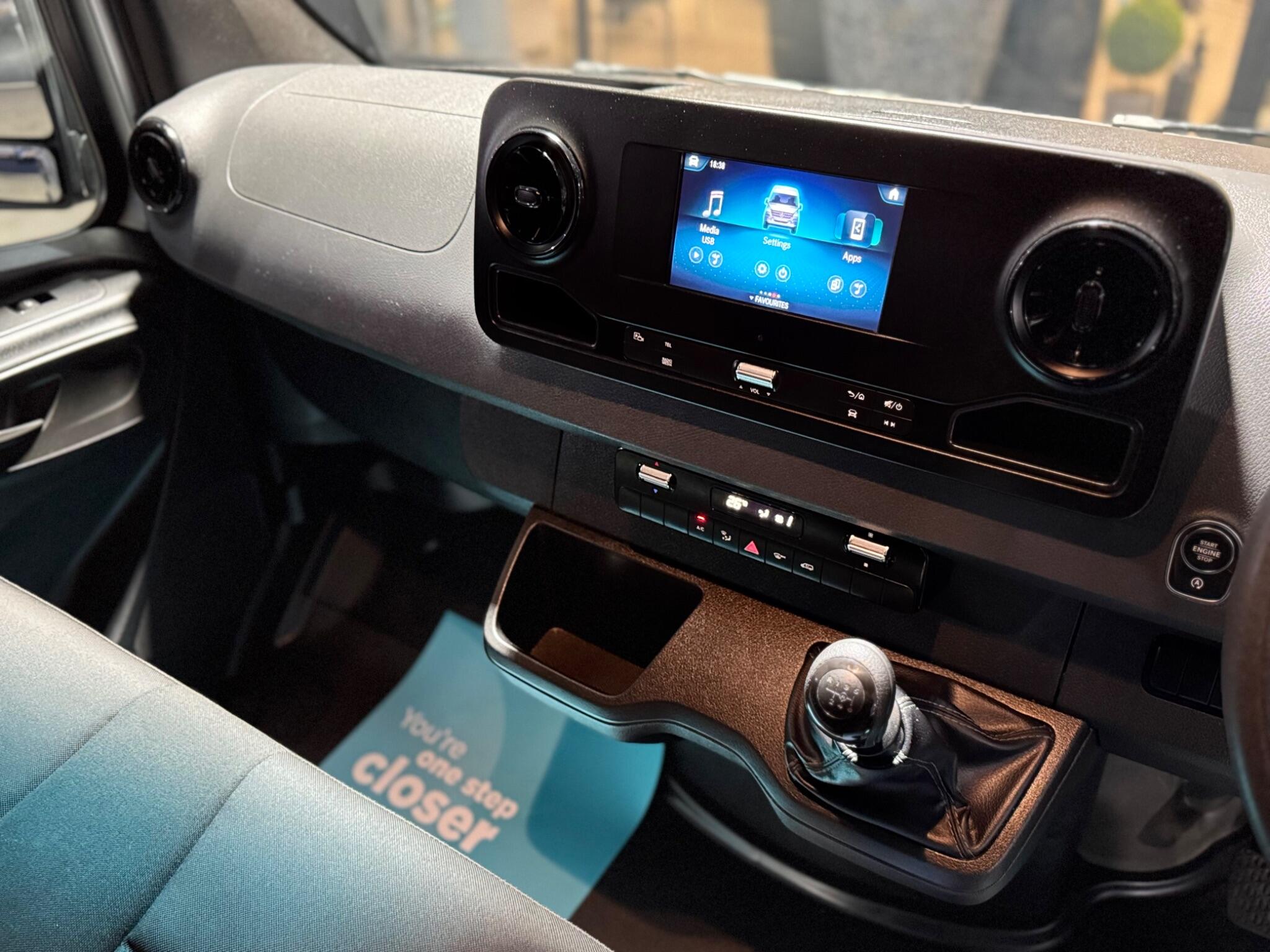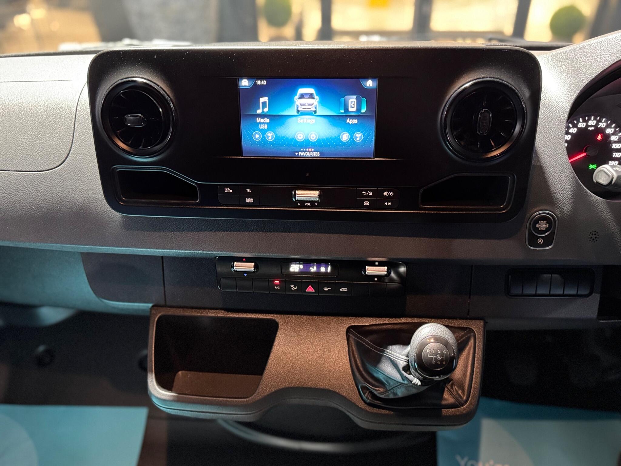 16in Steel Wheels, 270 Degree Double-Wing Rear-End Doors – Opening to Side Wall, ABS – Anti-Lock Braking System, ATTENTION Assist, Active Brake ASSIST, Adaptive Brake Lights, Adaptive ESP – Electronic Stability Programme, Additional USB-C, Airbag – Driver, Alternator 14V – 230A, Anti-Theft Protection Alarm, Armrest for Drivers Seat, Breakdown Management, Bulkhead – Full-Width Partition, Comfort Driver Seat, Comfort Overhead Control Panel, Communication Module – LTE – For Digital Services, Crosswind Assist, Cruise Control, DAB Digital Radio Tuner, Doors – Sliding Side Load Door on Left Side, Double Co-Driver Seat, Double Locks, Electric Windows – Front, Entrance Handle on Right-hand Rear Corner Pillar, Fuel Filter with Water Separator, Full Wheel Covers, Grab Handle – Load Compartment Sliding Door at Partition, Heat-Insulating Glass with Filter Band on Windscreen, Heavy Duty Battery – 12V 92Ah, Hill Start Assist, Integrated Connected Alarm System, Interior Courtesy Light Door Operated, Jack, Jump Start Contact, Keyless Start, Lighting – Headlight Assistant, Lights for Left Hand Traffic, Longitudinal Member Reinforcement, MBUX Multimedia System with 7-inch Touch Screen, Mercedes-Benz Emergency Call System – eCall, Multifunction Steering Wheel, Outside Air Temperature Gauge, Parking Package with Reversing Camera, Power-Assisted Steering, Pre-Installation for Switch Panel, Prewiring for Parameterizable Special Module – PSM, Radiator Grille Frame in Vehicle Colour, Seat Belt Reminder – Driver, Seat Belt Reminder for Co-Driver Seat, Shelf Above Windscreen, Spare Wheel, Spare Wheel Bracket Below Frame End, Steering Wheel – Rake and Reach Adjustment, Storage – Hinged Lid for Stowage Compartment, Storage Compartment Underneath Cockpit, Summer Tyres, Suspension – Stabilisation Level I, TEMPMATIC Semi-Automatic Climate Control System, Terminal Strip for Electrical Connection, Third Brake Light, Tyres 225-65R16 C, Tyres Resistance-Optimised, Tyres without Name of Make, USB-C Socket – 5V, USB-C and Bluetooth Interface – WIFI Hotspot -Apple CarPlay – Android Auto and a DAB Radio, Uprated Front Axle Weight Capacity, VIN Visible from Outside, Wood Flooring