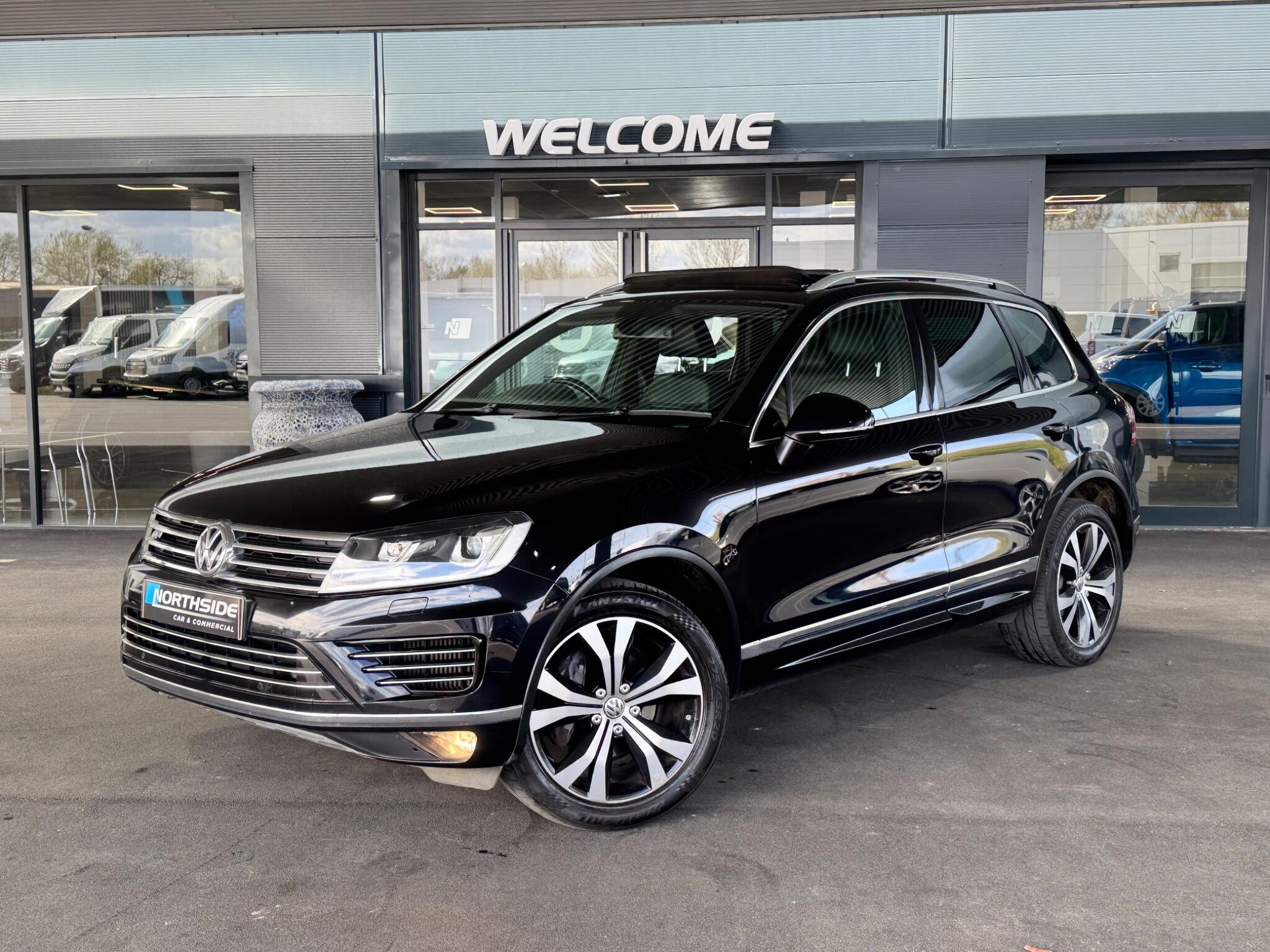 WHAT A LOT OF FLASH FOR NOT A LOT OF CASH THIS STUNNING 2015 15 VW TOUAREG (BASICALLY BENTLY BENTAGA) R-LINE 3.0 V6 DIESEL IS THE ULTIMATE CAR IN EVERY WAY …………ITS A TOW CAR, WORK HORSE, PRESTIGE OFF ROADER 4X4 AND ALL ROUND FAMILY CAR WITH LOADS OF FACTORY EXTRAS SUCH AS FULL LEATHER INTERIOR WITH HEATED SEAT, DAB RADIO, AIR CONDITIONING, SAT NAV, BLUETOOTH PHONE AND MEDIA STREAMING, ELECTRIC TAIL GATE, KEYLESS START, SELF PARK, PANORAMIC ROOF, TOW PACK, EXHAUST PACK, ROOF RAILS, CRUISE CONTROL, DIAMOND CUT ALLOY WHEELS, PARKING SENSORS, USB PORTS AND MUCH MUCH MORE………..BE QUICK THIS ULTIMATE 4X4 WON’T LAST LONG